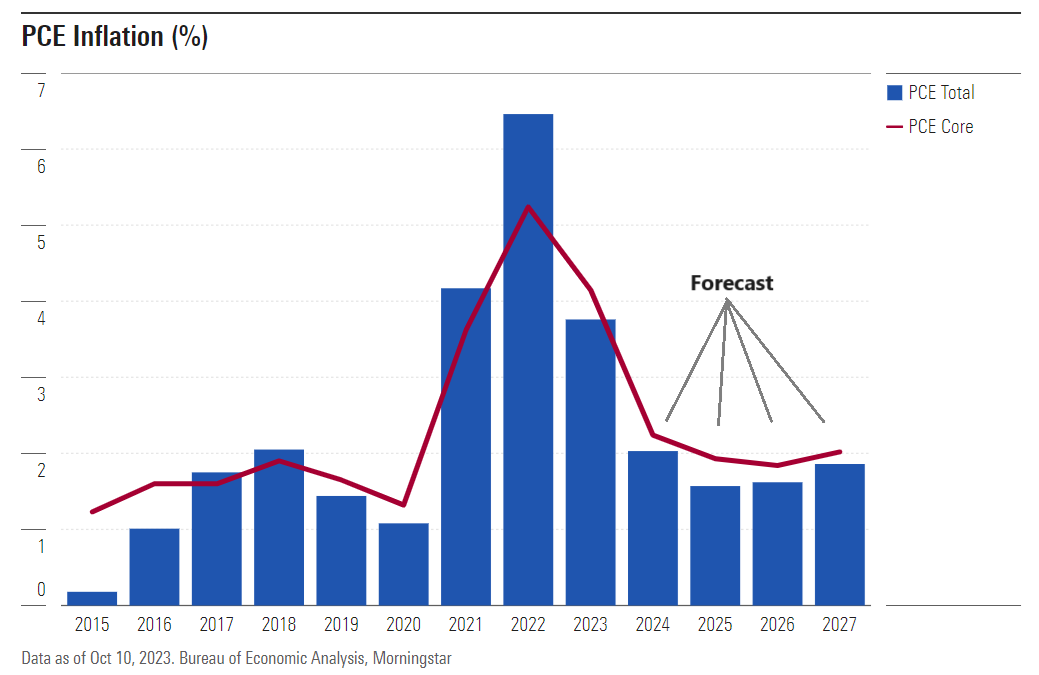 모닝스타는 미국의 인플레이션이 “경기침체 없이 정상으로 돌아올 것”이라고 전망했습니다 . 새로운 경제 전망의 일환으로 컨설팅 회사는 "인플레이션 효과는 2023년 말까지 사라지고 2022년에 40년여 만에 최고 수준에 도달한 후 2024년까지 사라질 것"이라고 조언했습니다. 예상되는 인플레이션 하락은 "주로 공급망 해결로 인한 가격 급등 완화와 연준의 긴축 정책으로 인한 적당한 경제 성장 속도에 의해 주도됩니다."