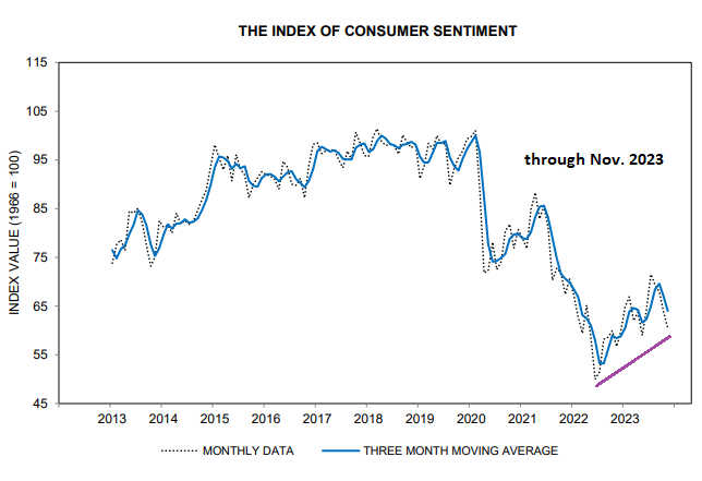 * 미국 소비자 심리 지수(US Consumer Sentiment Index)가 11월 4개월 연속 하락 :